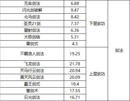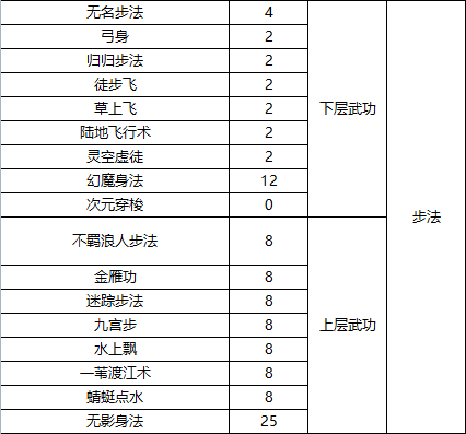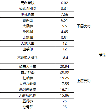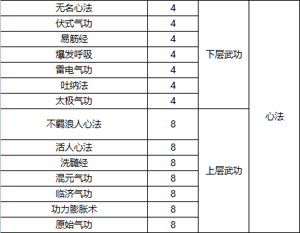今天给各位侠客们介绍每种武功需要元气值: