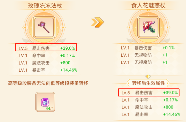 3)低级向高级装备转移「拼图」属性 当低级向高级装备转移「拼图」属性时,「拼图」等级将自适应按新装备区间值调整拼图等级(降低拼图等级)。该拼图数值可以正常继承数值不变。
